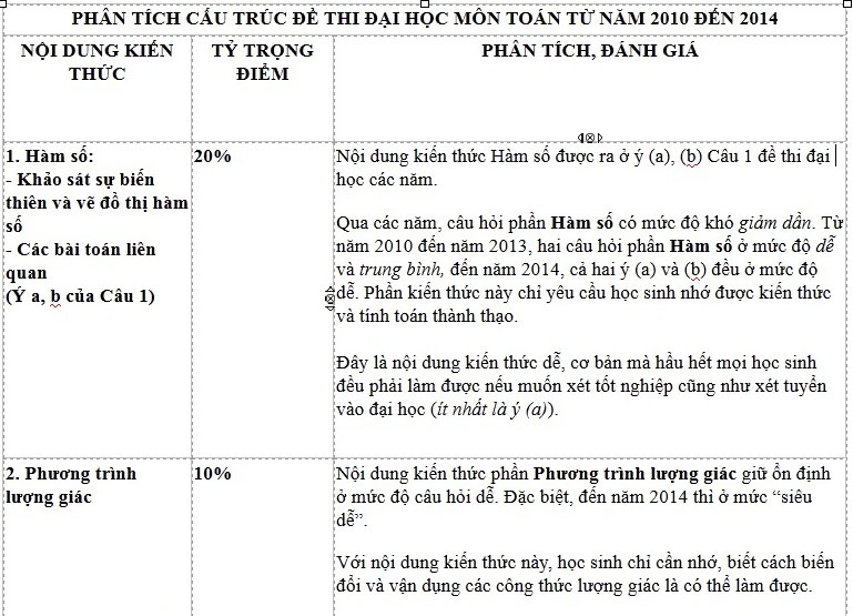 Cấu trúc đề thi Toán từ 2010 đến 2014