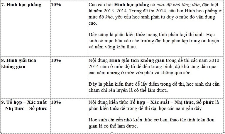 Các em chỉ cần nắm vững kiến thức cơ bản, biết nhận dạng phương pháp làm một số bài toán và tính toán cơ bản có thể đạt khoảng 5 điểm. Những câu hỏi này thường không có tính đánh đố hay yêu cầu học sinh phải tư duy, sáng tạo ở mức độ cao.