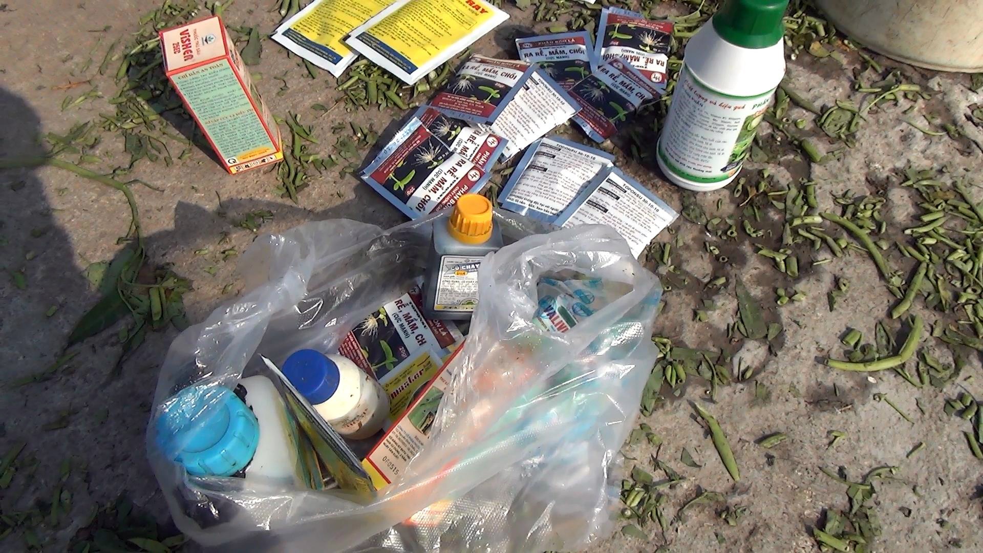 Về số vỏ thuốc bảo vệ thực vật phát hiện tại ruộng rau, có nhiều loại chỉ định sau khi sử dụng thì phải cách ly rau trong khoảng 14 ngày mới được thu hoạch nhưng theo quan sát, rau tại ruộng đã lớn nên không đảm bảo thời gian giãn cách sau khi phun thuốc.