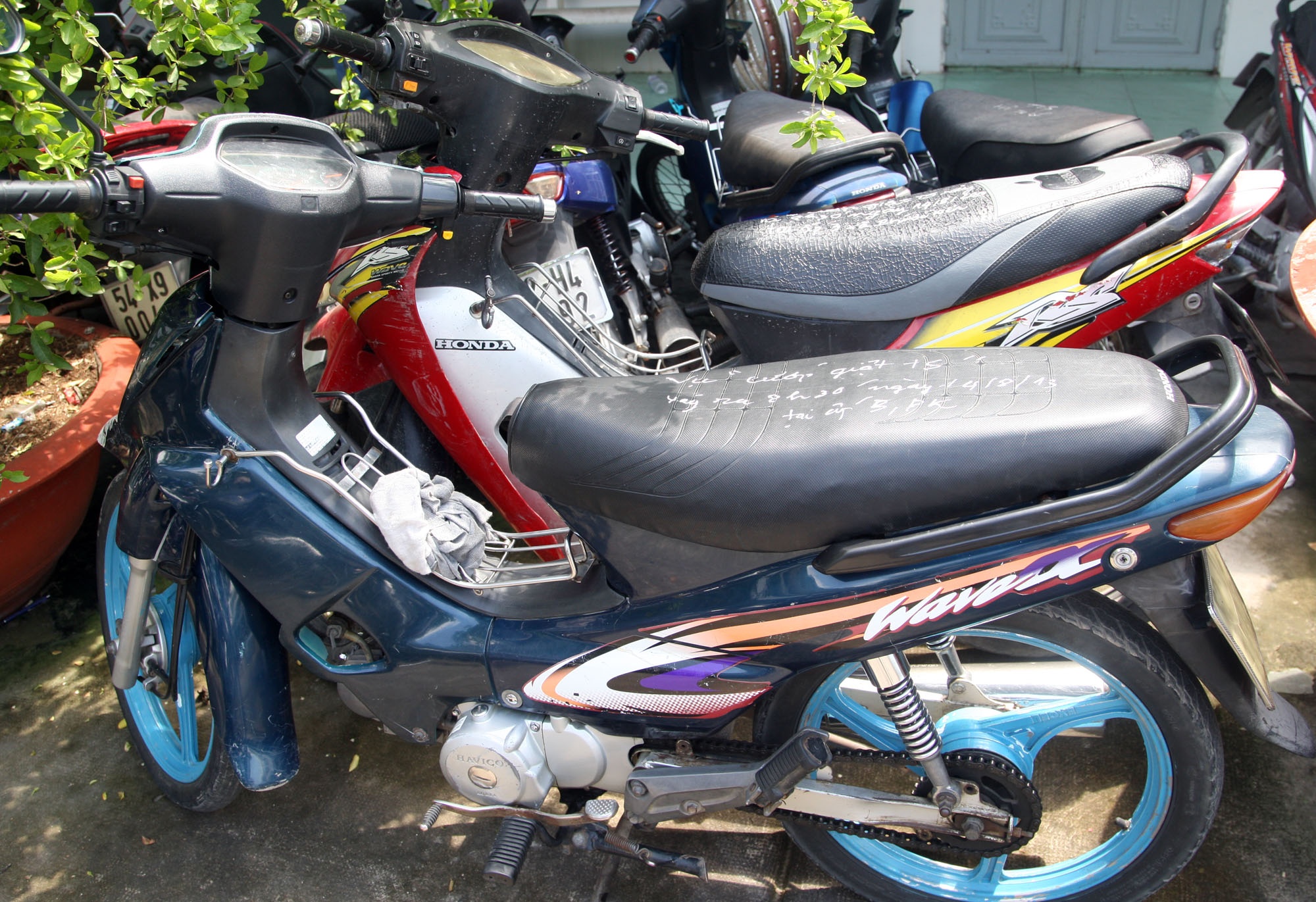 | Hai chiếc xe máy của 3 tên cướp dùng đi "ăn hàng". |