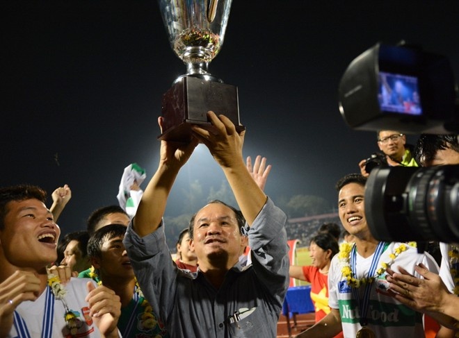 | U19 HAGL đã lên ngôi vô địch giải U21 quốc tế 2014, nhưng mục tiêu của bầu Đức khi thành lập Học viện HAGL Arsenal JMG không phải là tranh giành danh hiệu ở các giải trẻ trong nước. Ảnh: Đăng Văn |