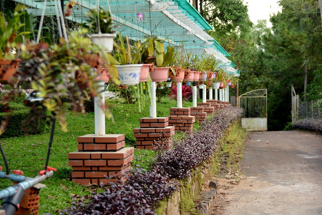 | Vườn lan và lối đi dẫn đến hồ sinh thái, vườn rau sạch. |