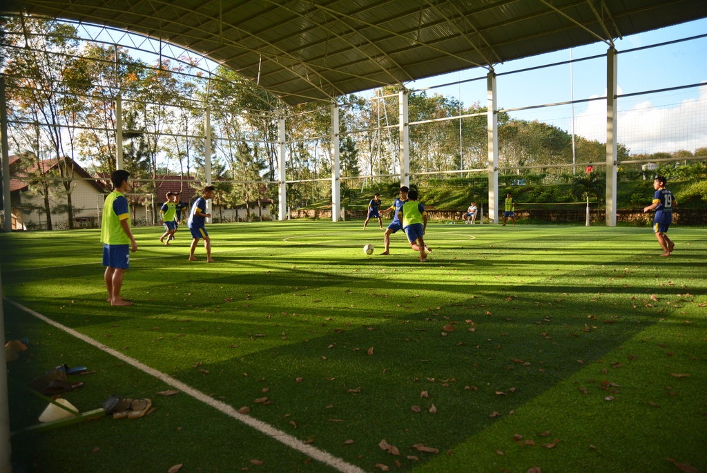 | Để đảm bảo các cầu thủ có thể tập trong mọi điều kiện thời tiết, bầu Đức cũng làm thêm 1 sân cỏ nhân tạo, ngay bên cạnh một sân cỏ. Sân này có mái che, giúp các cầu thủ có thể tập luyện ngay cả khi trời mưa. |