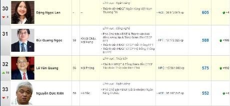 Một phần danh sách Top 200 người giàu trên thị trường chứng khoán Việt Nam cập nhật đến ngày 28/5/2014. |