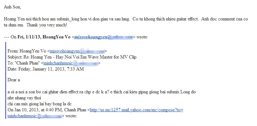 Yến nói tôi thiếu tiền cát-xê không trả cho Yến là hoàn toàn sai. Cát-xê của Yến chỉ có 1.000 USD. Trong đó, Jennifer Phạm là 5.000 USD, nghệ sĩ khác còn cao hơn Yến gấp 10 lần. Tôi vẫn còn giữ giấy thuế ghi rõ số tiền mà tôi đã chi trả cho Yến và các nghệ sĩ. Khi Yến qua Mỹ tôi đã mua vé máy bay hàng C giá 3.500 USD vì không muốn cô ấy mệt mỏi. Sau đó, đích thân tôi dẫn Yến đi shopping mua túi Miu Miu gấp 3 lần tiền cát -xê của Yến. Tôi không thể hiểu được tại sao Yến nói tôi không trả phù lao cho Yến?''.