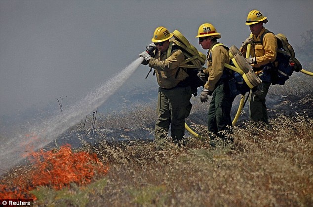 | Nhân viên cứu hỏa dập lửa tại thành phố Carlsbad, bang California hôm 14/5. Ảnh: Reuters |