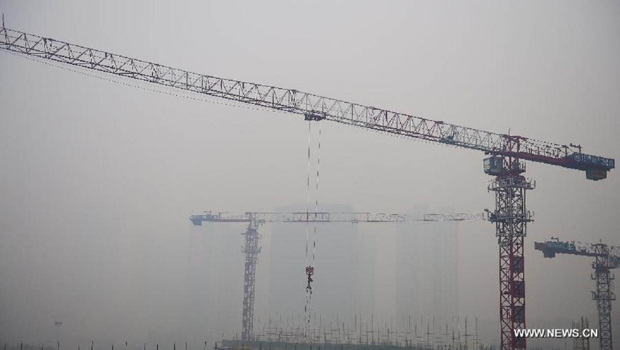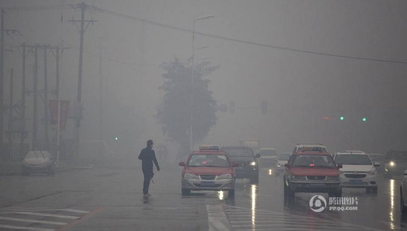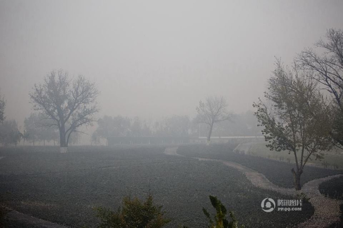 Toàn thành phố bị bao trùm trong màn khói bụi dày đặc. Chính quyền tuyên bố tình trạng báo động ở mức cao nhất, cảnh báo người dân nên ở trong nhà và yêu cầu các nhà máy cắt giảm sản xuất nhằm giảm mức độ ô nhiễm không khí. Ảnh: Ecns |