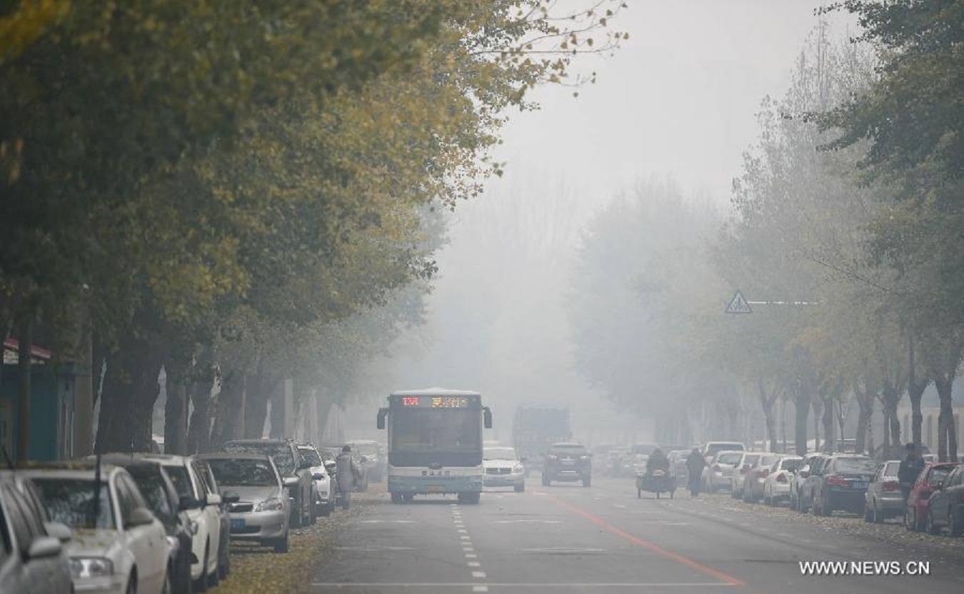 Ngày 8/11, Cơ quan Bảo vệ Môi trường thành phố Thẩm Dương, tỉnh Liêu Ninh, Trung Quốc, thông báo mật độ hạt bụi độc có kích thước nhỏ hơn hoặc bằng 2,5 micromet (PM2,5) trong không khí đã vượt mức 1.000 microgram/m3. Các thành phố lân cận cũng có mật độ hạt trôi nổi độc hại ở mức cao, AP cho hay. Ảnh: Xinhua |