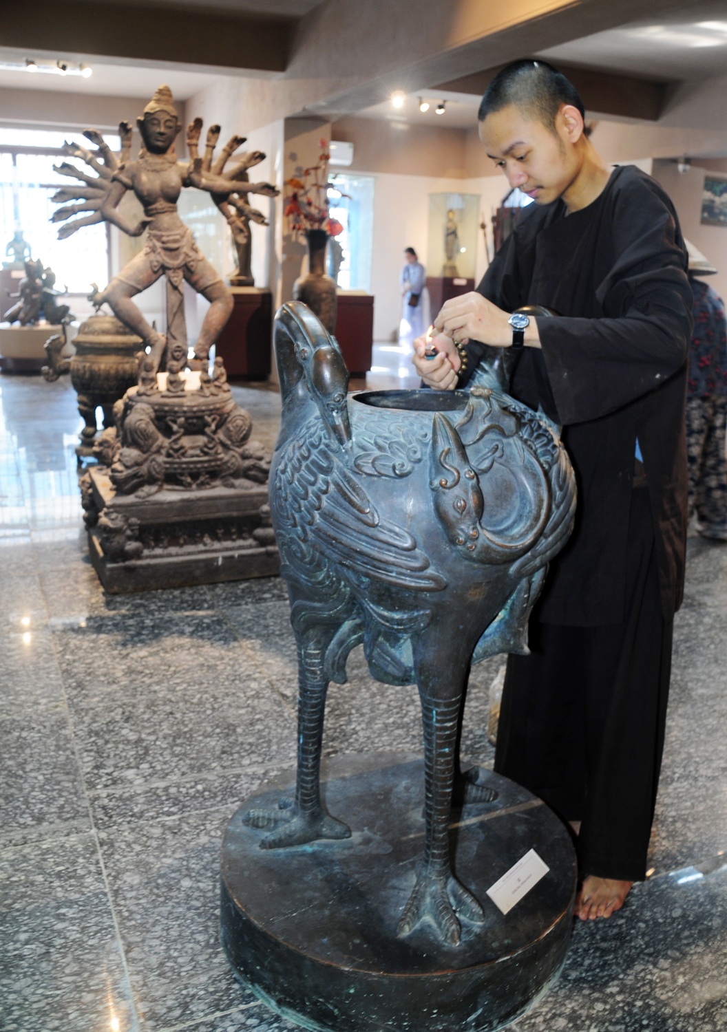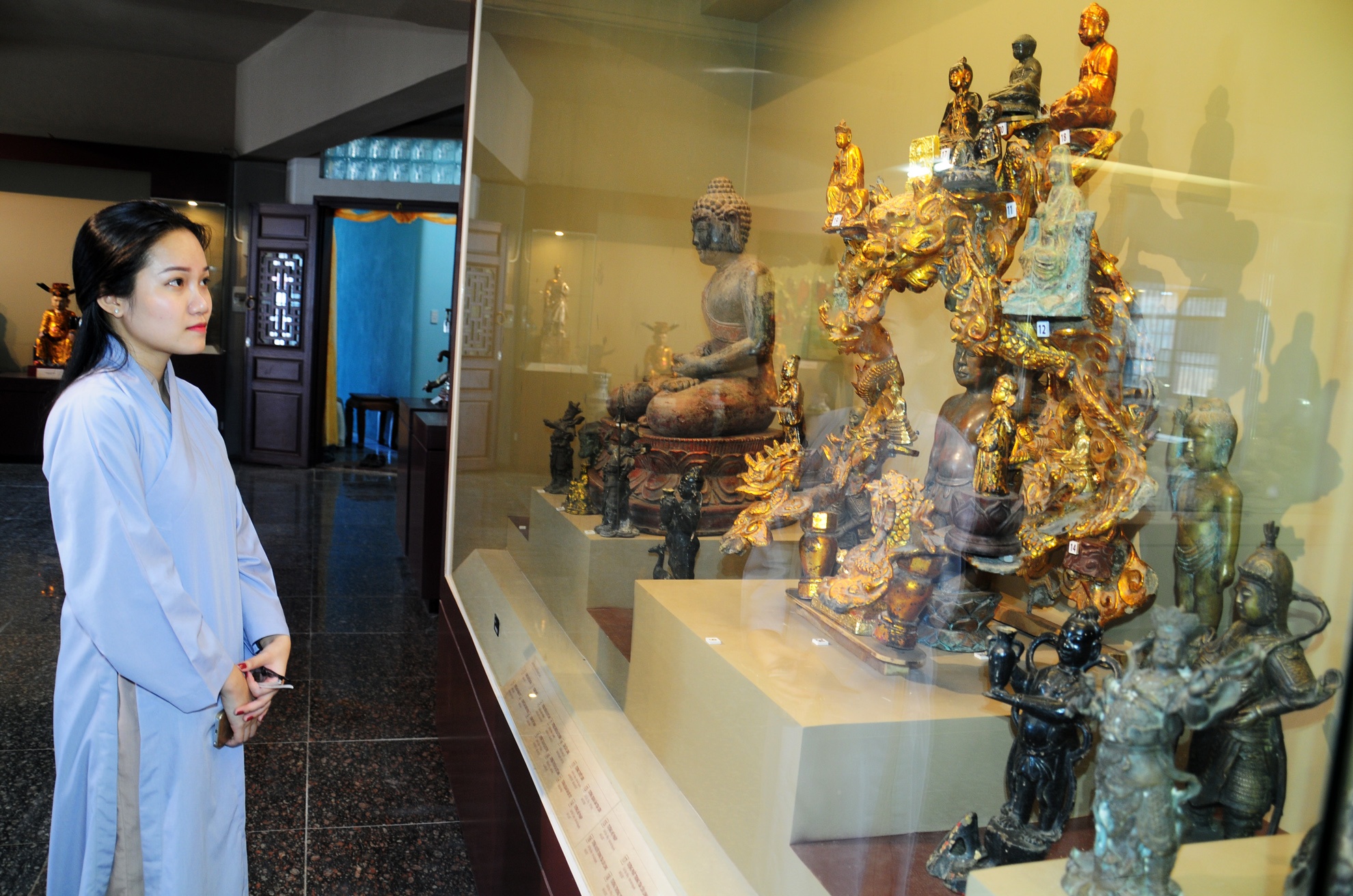 Cửu đỉnh, tượng phật, chuông đồng và nhiều hiện vật khác có niên đại từ hàng trăm năm được làm bằng nhiều chất liệu quý vừa đưa ra trưng bày tại Bảo tàng phật giáo mới khánh thành.