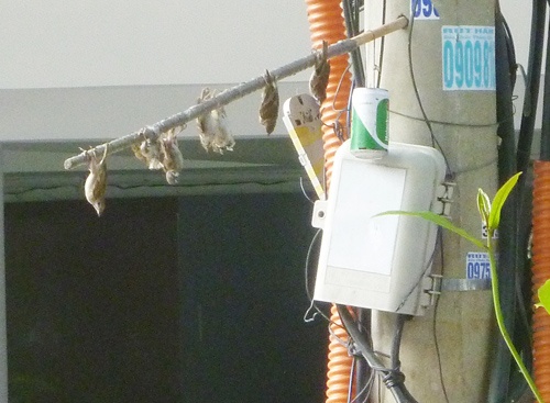 | Gã "chim tặc" quay lại nhặt chiếc bẫy bị người dân ném ra xa. Một chiếc loa nhỏ giấu trong vỏ lon bia Heikeken phát ra tiếng chim sẻ để nhử chim từ những cây khác bay đến và một thanh tre bôi đầy chất keo mà khi chim đậu vào là bị dính chặt. |