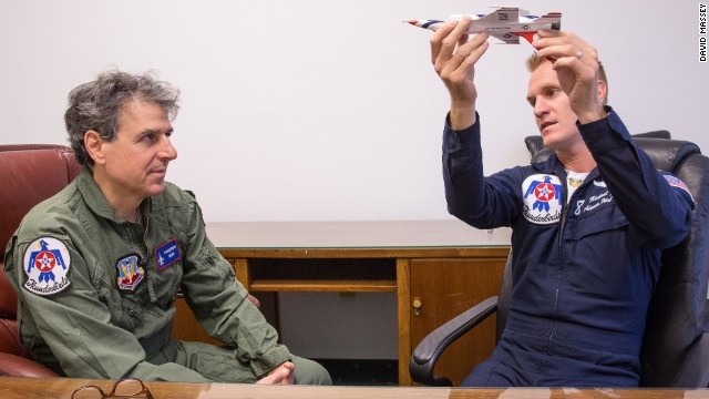 Trước khi Lavin ngồi lên ghế phụ máy bay, sĩ quan đội bay Thunderbirds hướng dẫn anh mọi tình huống có thể xảy ra. Thunderbirds là phi đội trình diễn của không quân Mỹ, thuộc biên chế của Không đoàn số 57, trụ sở tại Căn cứ không quân Nellis, Nevada. Không chỉ trình diễn ở Mỹ, phi đội còn thường xuyên lưu diễn trên khắp thế giới. |