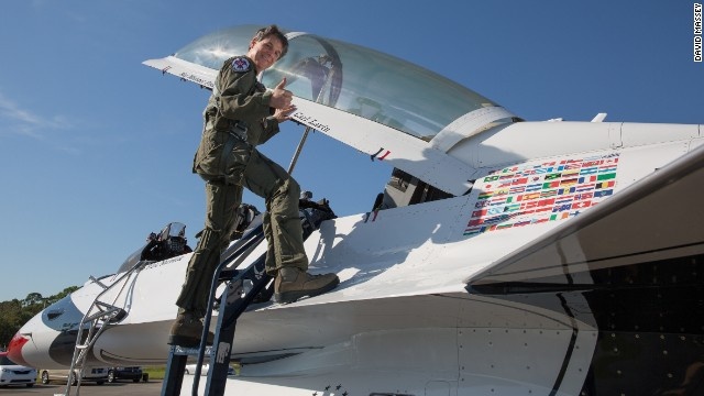 Sau quá trình đào tạo hơn 3 giờ, chỉ huy phi đội Thunderbirds tiễn phóng viên CNN ra tận đường băng. |