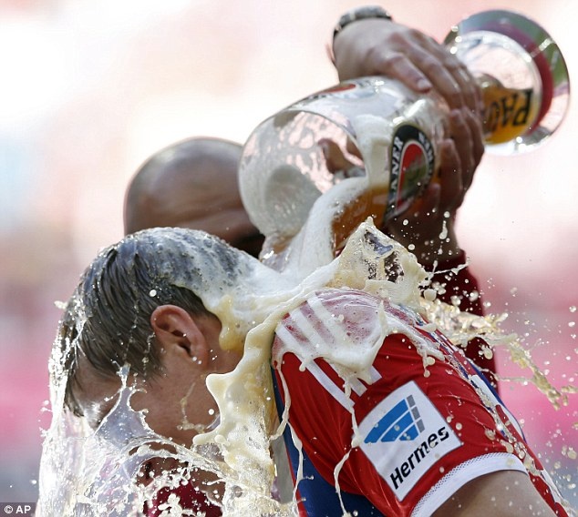 | Robben cũng cho Matthias Sammer "tắm bia" |