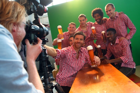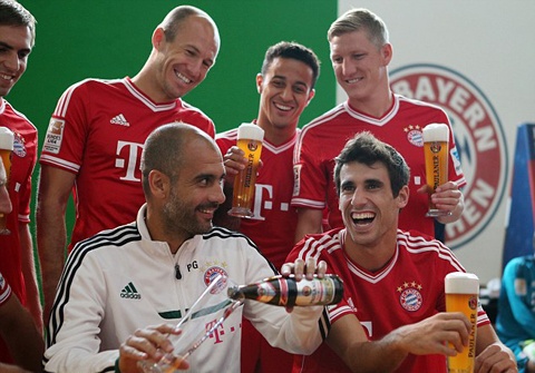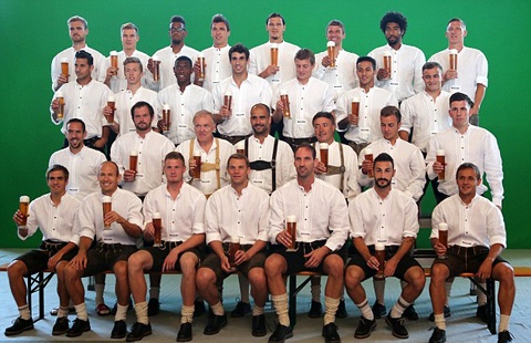 | Các cầu thủ và ban huấn luyện của Bayern Munich luôn rất hào hứng trong mỗi dịp quảng cáo cho hãng bia danh tiếng ở Đức. |