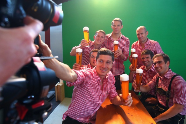 | Sau mỗi buổi quảng cáo bia, tất cả thành viên Bayern sẽ đắm mình trong lễ hội Oktoberfest. |