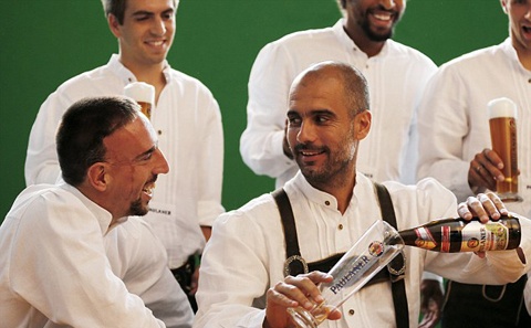 | Dưới triều đại Pep Guardiola cũng không phải ngoại lệ. Lần đầu tiên chiến lược gia người Tây Ban Nha có cơ hội góp mặt trong quảng cáo bia vào tháng 8/2013, chỉ vài tháng sau khi ông tiếp quản chiếc ghế nóng tại Allianz Arena. |