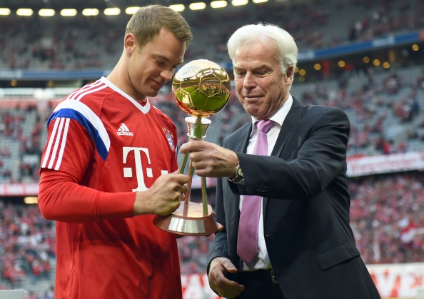 | Thủ thành Manuel Neuer nhận danh hiệu cầu thủ xuất sắc nhất năm trước khi trận khai mạc Bundesliga 2014/15 diễn ra. |