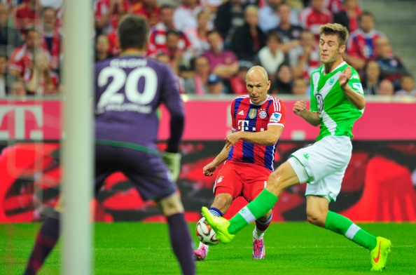 | Sau tiếng còi khai cuộc, Robben và đồng đội tạo ra sức ép cực lớn về phía khung thành của Wolfsburg. |