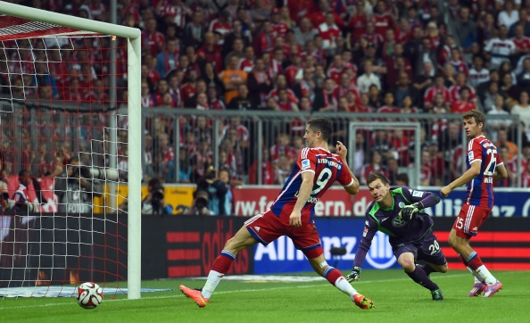 | Khởi nguồn từ pha để mất bóng từ giữa sân của Wolfsburg, bóng được các cầu thủ Bayern phối hợp như đá tập. Và người tung ra đường chuyền quyết định để Robben lập công là tân binh Lewandowski. |