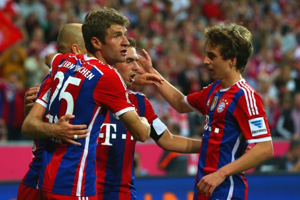 | Chủ nhân của hai bàn thắng bên phía Bayern chia vui cùng nhau. |