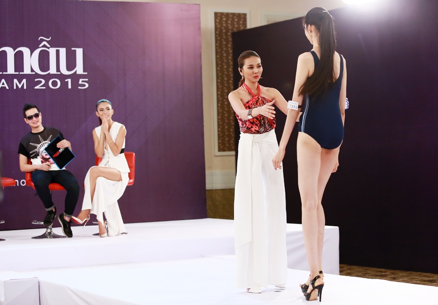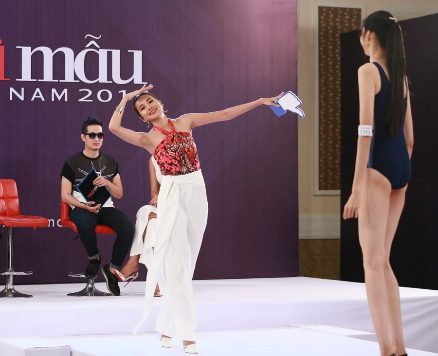 | Chân dài 1,16 m trở lại sàn diễn với phong thái tự tin, mạnh dạn. Thanh Hằng cũng hết lời khen ngợi sự thể hiện của thí sinh. Siêu mẫu còn trực tiếp hướng dẫn thí sinh cách chuyển dáng, tạo phong cách khi catwalk. |
