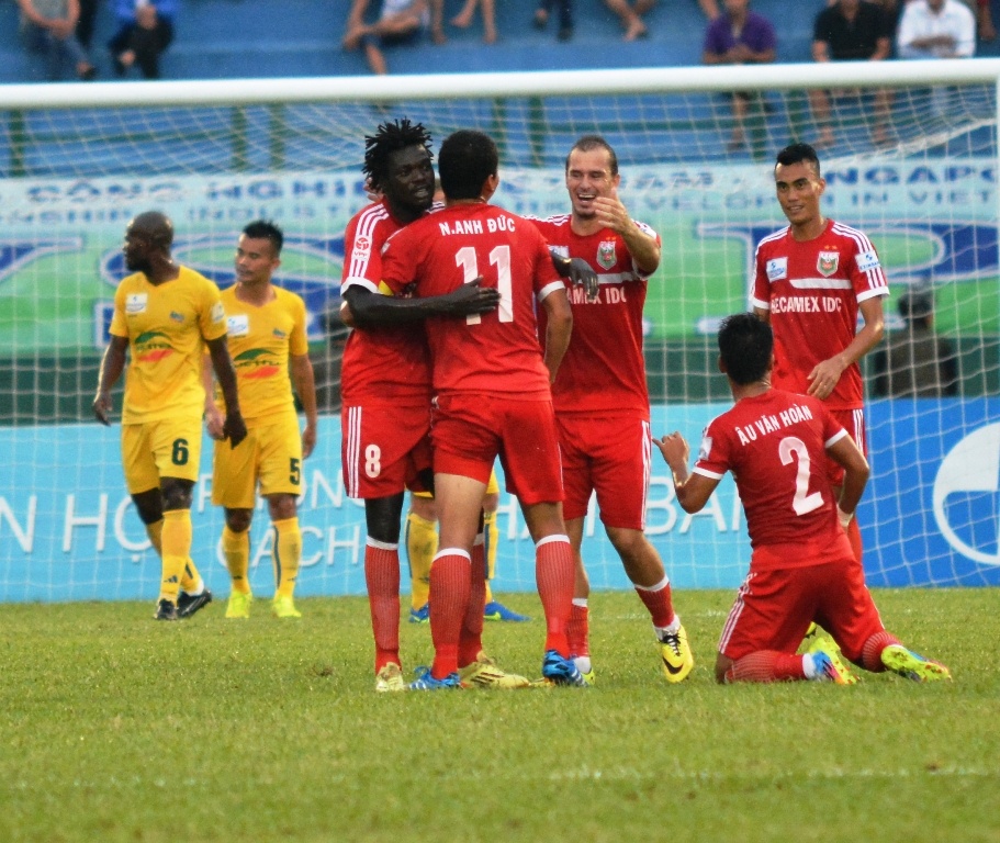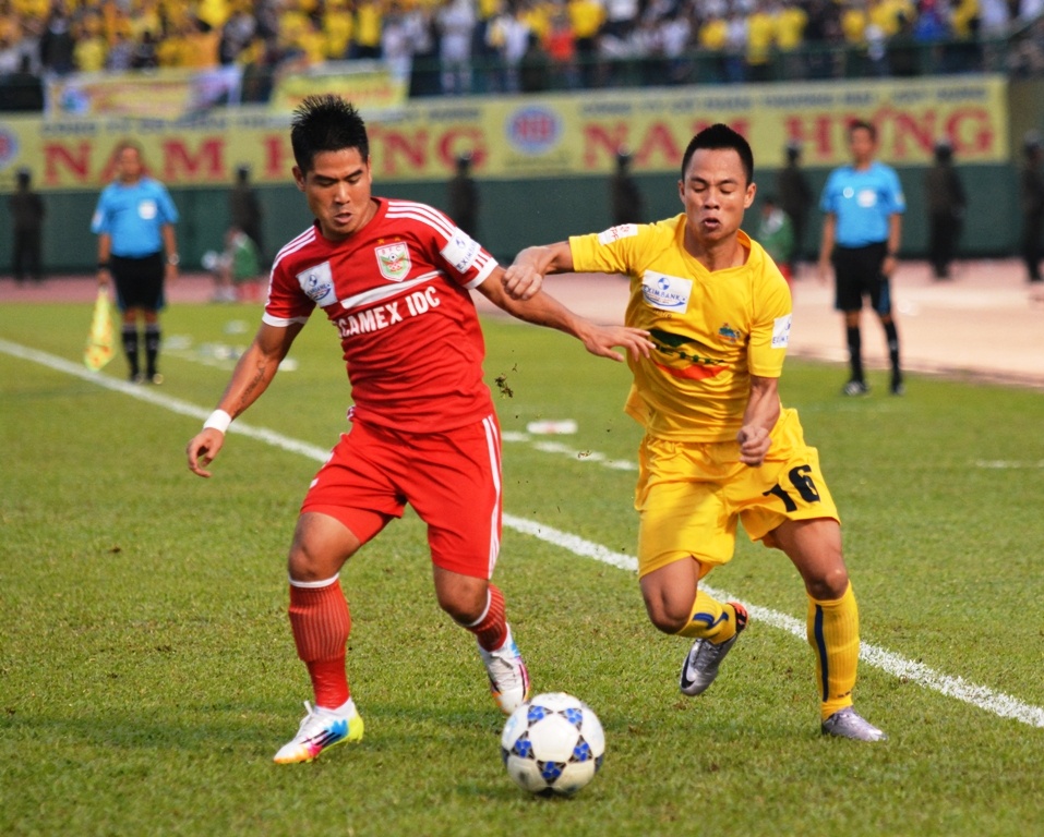 | B.Bình Dương không tấn công áp đảo nhưng có được 2 bàn dẫn trước đều do công của Anh Đức sau những pha dứt điểm chớp nhoáng ở các phút 19, 26. Trước đó, Huỳnh Kesley đã có cú sút chạm xà. |