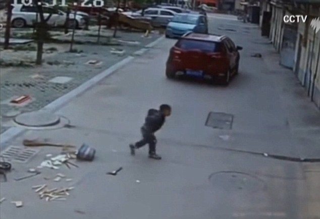 Một ô tô chèn qua cơ thể một cậu bé 6 tuổi đang ngồi chơi trên đường phố ở phía đông bắc Trung Quốc, song em đã thoát chết.