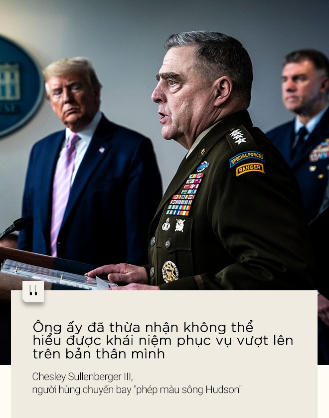 "Lần đầu tiên trong lịch sử Mỹ, một tổng thống đã liên tục thể hiện sự khinh thường và thiếu tôn trọng một cách ghê gớm và thô thiển với những người đã phục vụ và hy sinh khi phục vụ đất nước. Dù tôi không bất ngờ, tôi vẫn cảm thấy ghê tởm bởi chủ nhân hiện nay của Phòng Bầu dục. Ông ấy đã liên tục thể hiện bản thân hoàn toàn không phù hợp và không có chút tôn trọng nào dành cho vị trí của mình", Sullenberger từ chối nhắc tên Tổng thống Trump.