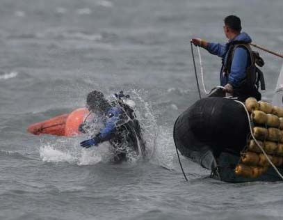 | Thợ lặn ngâm mình trong nước tìm kiếm các nạn nhân vụ tàu Sewol chìm. Ảnh: Reuters. |