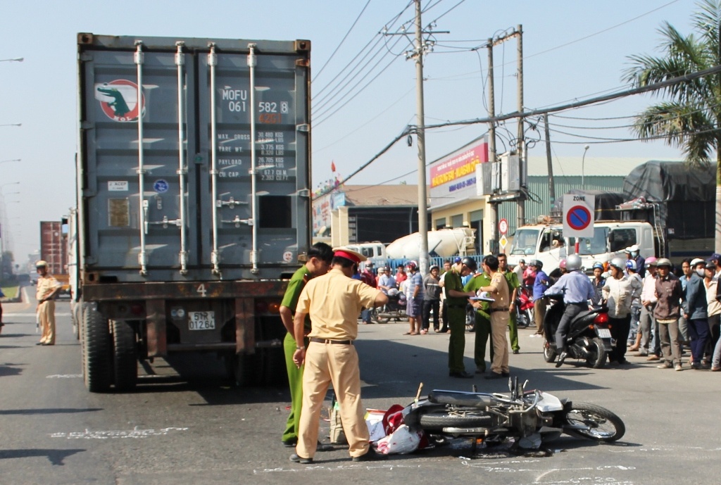 Theo người dân, thời điểm trên, bà Huỳnh Thị Nga (48 tuổi, quê Tiền Giang) điều khiển xe máy chở cháu ngoại là bé Lê Thúy Vy (9 tuổi) đi từ thị xã Thuận An về Tiền Giang ăn Tết.