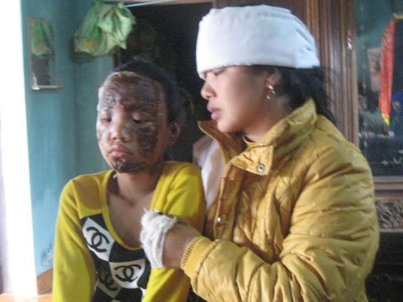 “Hôm đưa cháu lên bệnh viện, mọi người tưởng nó không qua khỏi. Gương mặt và mái tóc bị lửa đốt cháy gần hết. Cháu là con gái, không biết mai này sẽ sống thế nào”, ông Đào lo lắng.