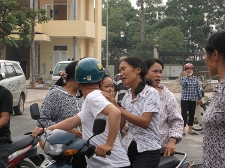 | Mẹ cháu bé được người thân động viên, chở về nhà. |