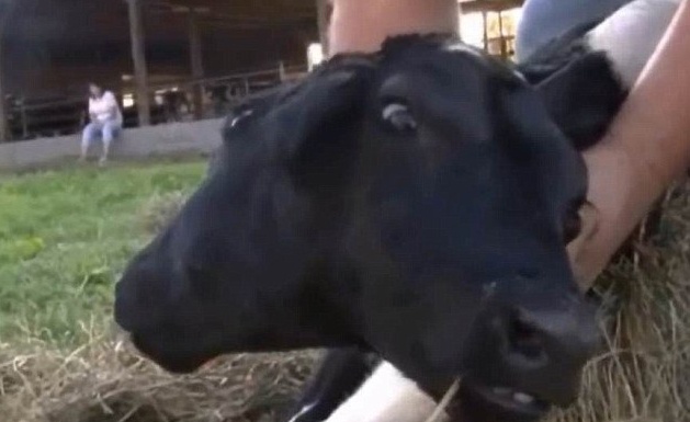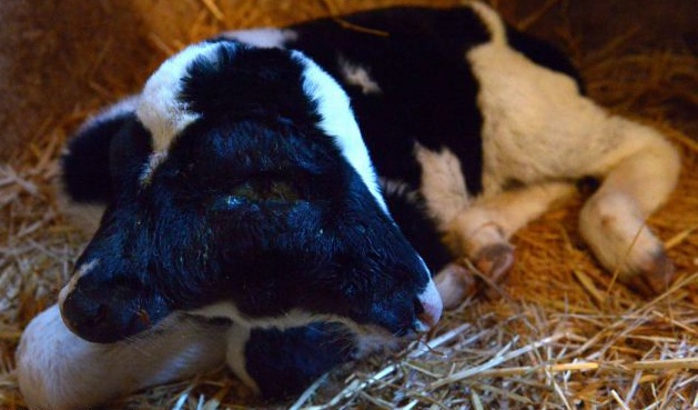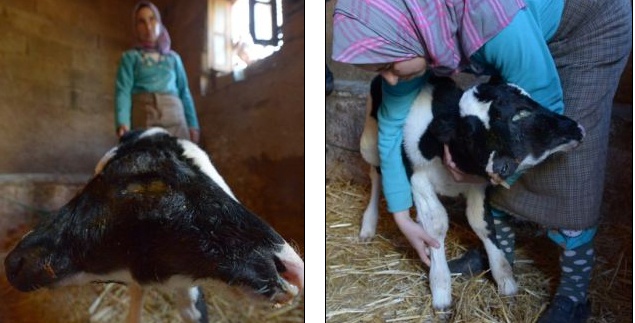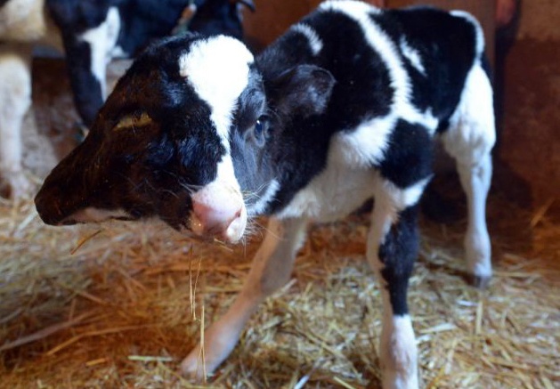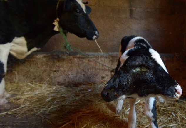 | Con bê có khả năng ăn bằng cả hai mồm. Ảnh: AFP |