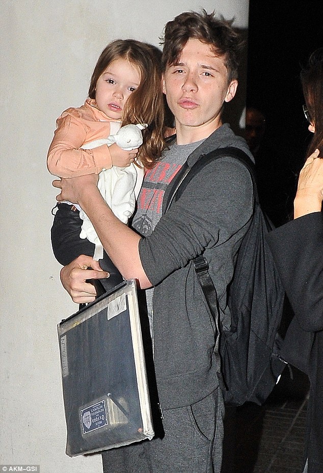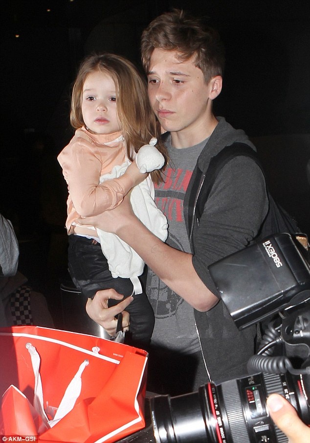 Harper mệt mỏi và có phần bơ phờ sau chuyến bay dài. Thiên thần 3 tuổi nhà Becks khẽ nép vào bờ vai anh trai, tay vẫn ôm chặt chiếc chăn thú quen thuộc. Harper để mái tóc dài buông mềm mại chứ không búi củ tỏi như mọi khi. Tuy vậy, cô con út của Beckham vẫn vô cùng xinh xắn, đáng yêu.