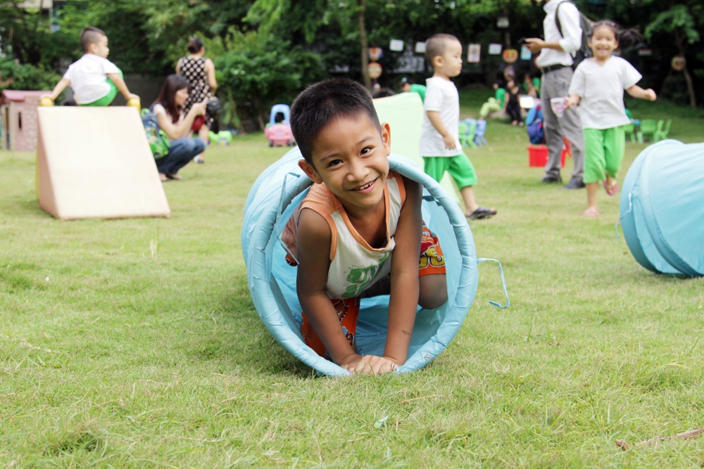 Sau một mùa hè xả hơi, nhiều phụ huynh đang tìm biện pháp khởi động tinh thần đi học trước khi bắt đầu năm học mới. Đặc biệt là lứa tuổi “ẩm ương khó dỗ” của nhóc mầm non. Để giúp con có hứng thú đến trường, hàng trăm phụ huynh đã đưa các bé đến với lễ hội mang tên "Back to school". Trong ảnh: Những trò chơi vận động ngoài trời thu hút rất đông trẻ tham dự.
