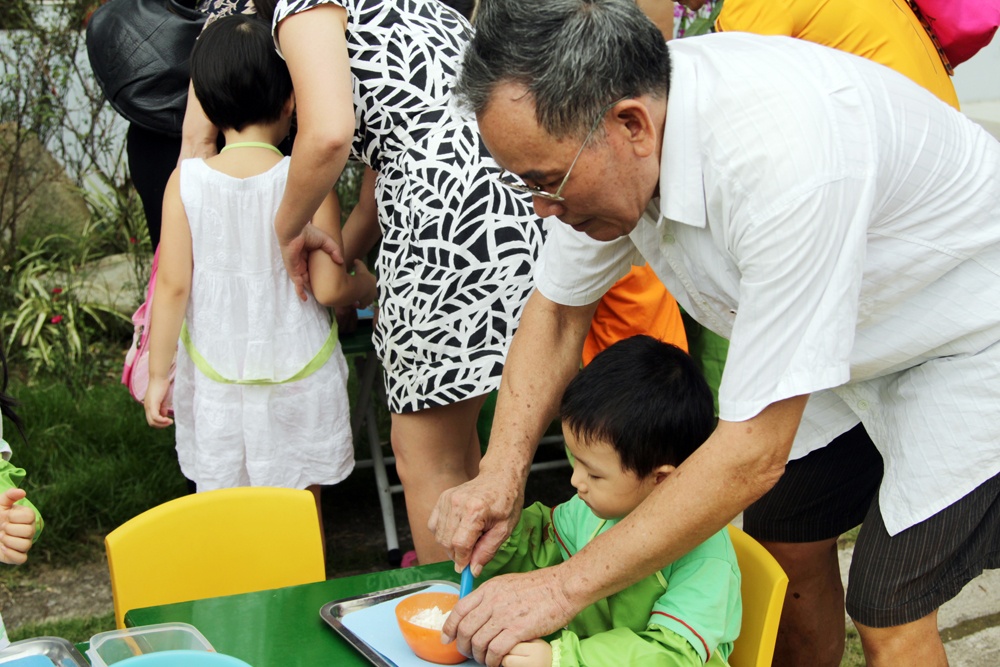 | Lễ hội được tổ chức liên tiếp trong 3 ngày dành cho các bé mầm non. Tất cả những trò chơi đều giúp các bé có những ngày cuối tuần vừa chơi, vừa được kích thích trí tò mò để chuẩn bị đi học. Trong ảnh: Bé được tự làm đồ ăn dưới sự hướng dẫn của phụ huynh. |
