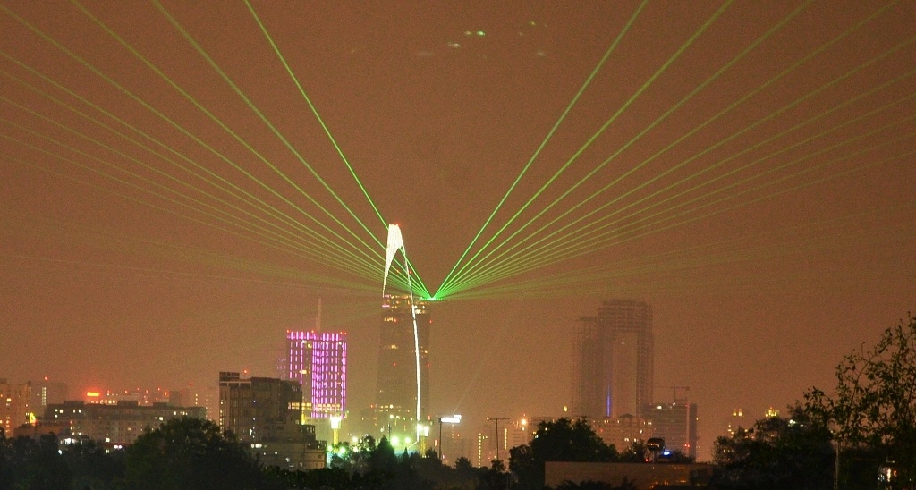 Công tác tổ chức bắn pháo hoa và trình diễn ánh sáng lazer tại toà tháp Bitexco Financial Tower đã hoàn tất, sẵn sàng cho màn trình diễn trong đêm chào mừng năm mới 2015.
