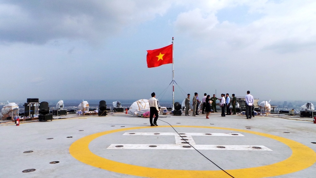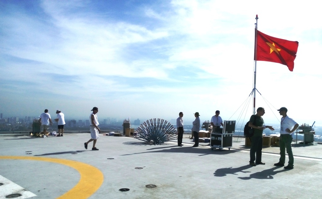 | Đoàn công tác của TP.HCM cũng đã đến kiểm tra dàn pháo hoa tại sân đỗ trực thăng của toà nhà Bitexco. |