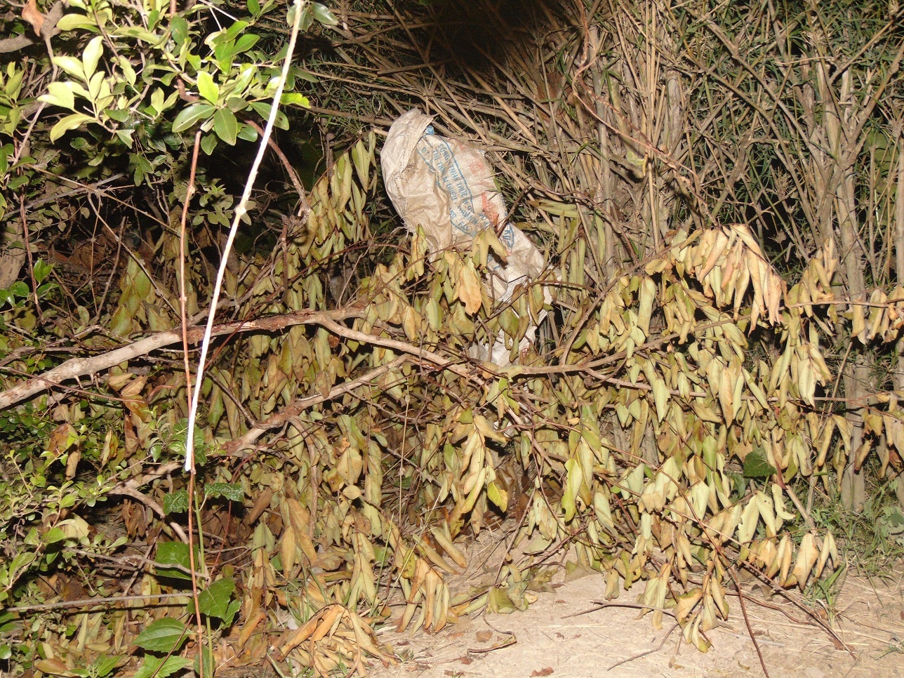 | Hiện trường nơi bé trai bị dẫm chết đưa vào bao tải ném đi. |