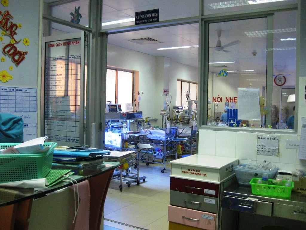 | Khoa Hồi sức - Sơ sinh bệnh viện Nhi Đồng 1, nơi cấp cứu và chăm sóc bé trai bị cha chém trúng khi còn trong bụng mẹ. |