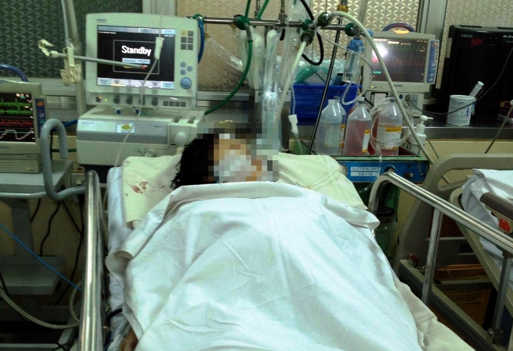 Chị nhập viện trong tình trạng mất rất nhiều máu, trên người bị nhiều vêt chém ở vùng đầu, cổ mặt, một vết chém dài khoảng 15cm ở bụng, không đo được huyết áp,…