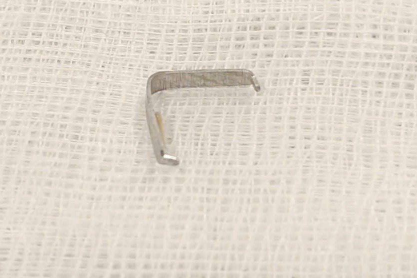 Dị vật là chiếc ghim tất được các bác sĩ lất ra. |