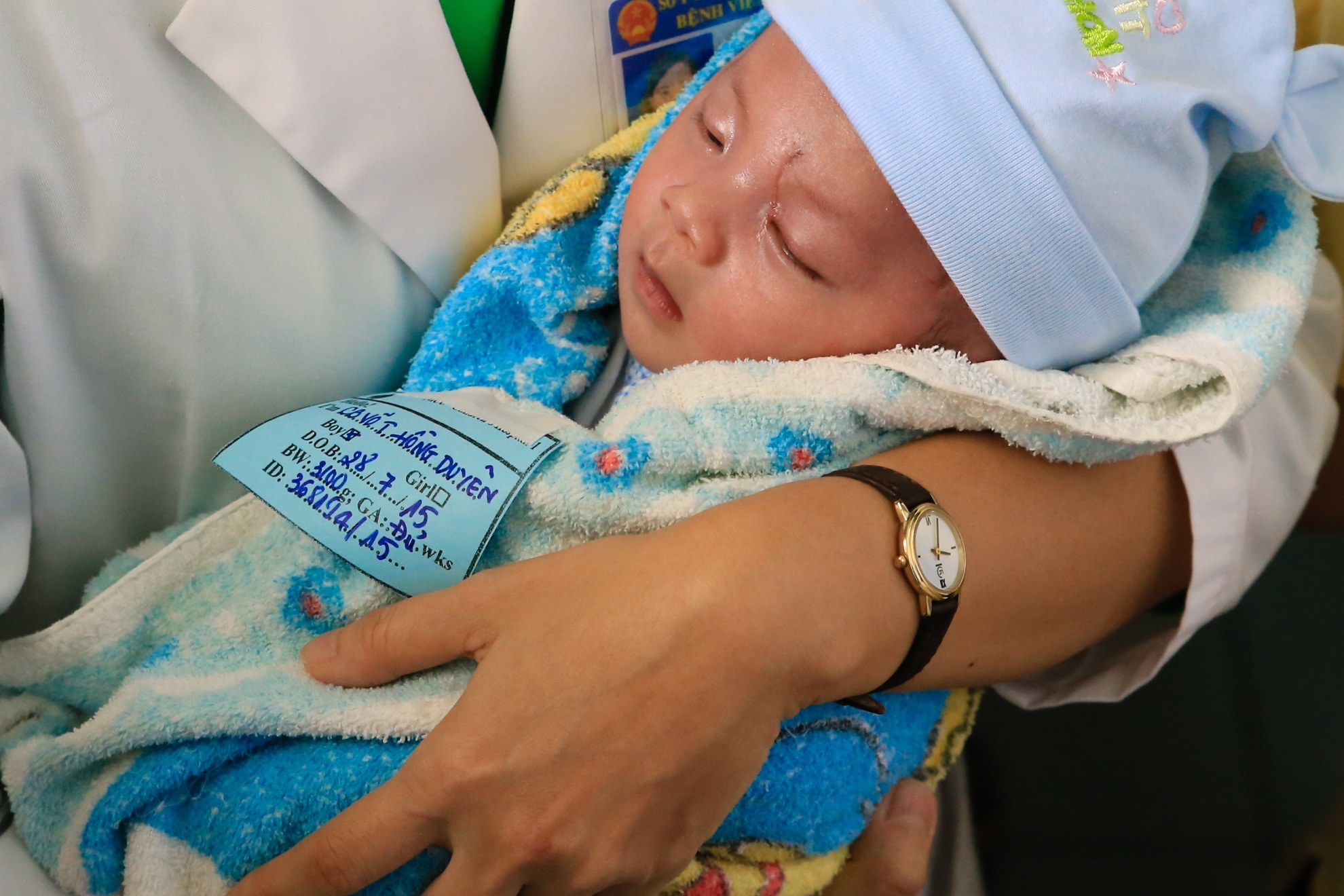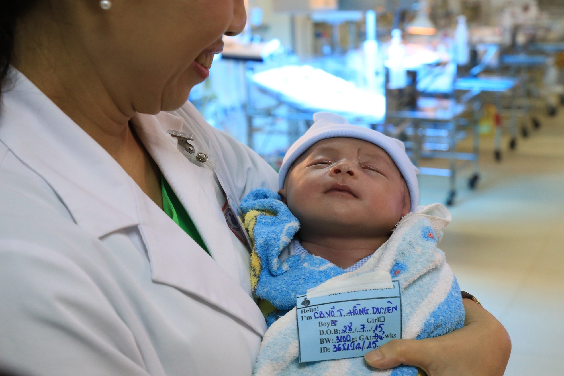 "Lo sợ em bé có thể ngưng thở, ngưng tim ngay trên bàn mổ nên chúng tôi phải huy động bác sĩ trưởng khoa, chuyên gia đầu ngành vào kíp mổ", bác sĩ Hiếu, trưởng kíp mổ nói.