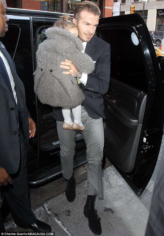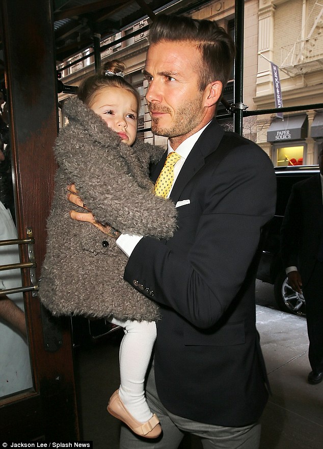 Sau đó, để ăn mừng thành công của vợ, David Beckham quyết định đưa cả nhà tới nhà hàng sang trọng Balthazar tại SoHo, New York để ăn trưa. Beck nhận nhiệm vụ bế và chăm sóc Harper để vợ được thảnh thơi.