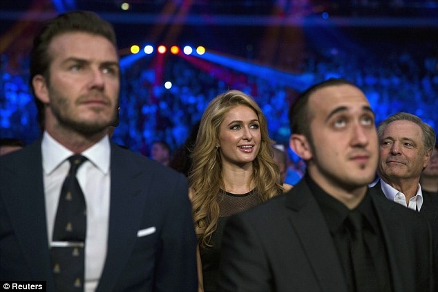 | Dù ngồi ngay trên người đẹp đình đám chỉ một hàng ghế nhưng David Beckham gần như phớt lờ sự có mặt của cô. Anh thậm chí không chào hỏi hay ngoái lại nhìn Paris Hilton dù chỉ là xã giao. |