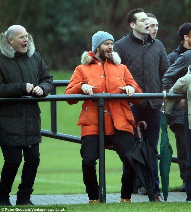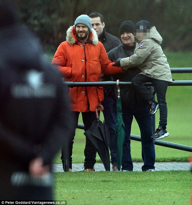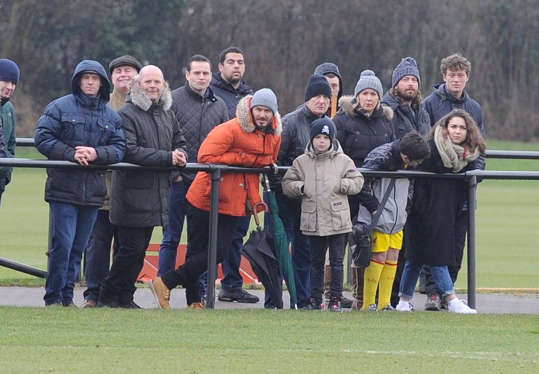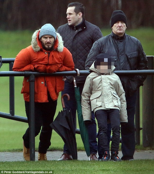 | Hôm qua (19/2), mặc dù trời mưa lạnh nhưng Beckham vẫn cùng các bậc phụ huynh có mặt trên sân tập Kirkby để cổ vũ trận đấu giữa đội trẻ Arsenal gặp Liverpool. Cậu con trai Romeo của Beckham vừa gia nhập lò đạo tào trẻ của CLB Arsenal hồi đầu năm 2014. |