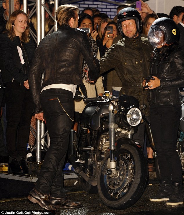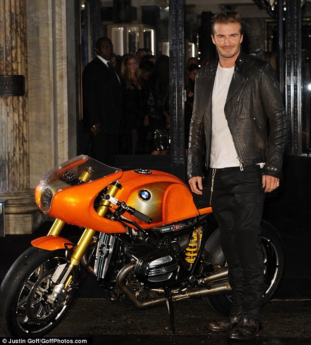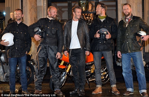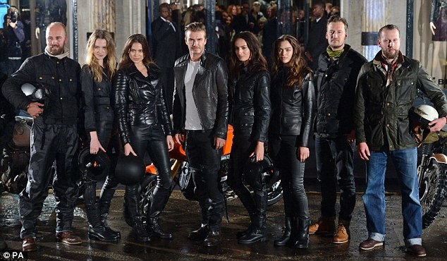 | Becks cùng các dàn người mẫu cho ra mắt sản phẩm đồ da mang thương hiệu Belstaff. |