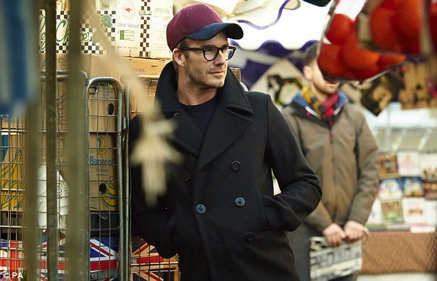 | Những hình ảnh hậu trường của bộ phim được hé lộ trên Daily Mail. Becks đứng ở siêu thị, đội một chiếc mũ bóng chày và đeo kính. |