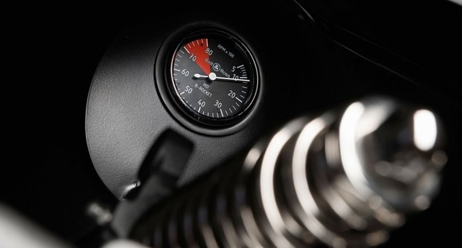 Cặp tua-bin lập tức gợi liên tưởng đến động cơ máy bay có 2 chức năng khác nhau. Trong đó, tua-bin bên phải cung cấp gió cho khối động cơ V-Twin. Tua-bin còn lại nằm bên trái có tác dụng làm mát dầu. Nhiệm vụ của Bell & Ross là thiết kế đồng hồ đo vòng tua động cơ được tích hợp vào yếm trước trên B-Rocket.