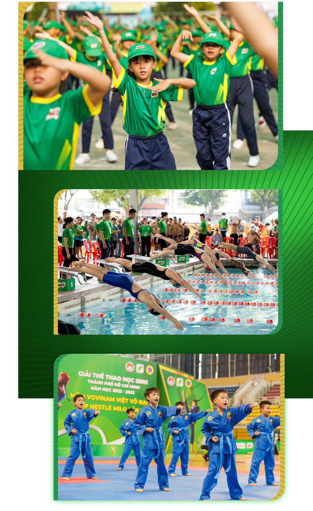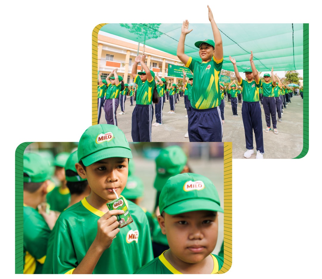 Thương hiệu MILO xuất hiện tại nhiều hoạt động thể thao học đường như Hội khỏe Phù Đổng, các giải đấu của các bộ môn bóng đá, bóng rổ, bơi lội, Vovinam… trong khuôn khổ chương trình “Năng động Việt Nam” triển khai tại nhiều địa phương trên cả nước. Thể thao là người thầy quan trọng. Qua việc rèn luyện, trẻ em được phát triển sự bền bỉ, tính kỷ luật, lòng kiên nhẫn, sự kiên cường và xây dựng nên tương lai tương sáng hơn.